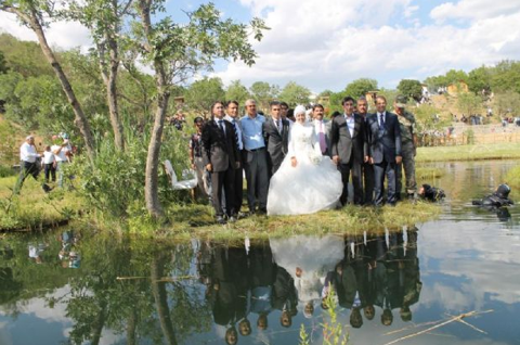 Nikâh kıyılırken, dalgıç polislerin de suda güvenlik önlemi alması