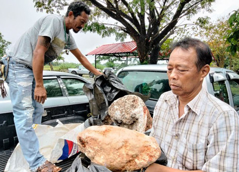 Galerinin tamamı için tıklayınızOlay, Tayland’ın Nakhon Si Thammarat bölgesinde meydana geldi. Sahilde yürüyüşe çıkan balıkçı Naris Suwannasang (60), birkaç soluk kaya benzeri soluk topak gördü. Bulduğu kaya benzeri parçaları eve götüren Suwannasang, kayaların parfüm üretiminde pahalı bir bileşen olarak kokunun daha uzun süre dayanmasını sağlamak için kullanılan balinalardan nadir bir salgı olan ambergrise benzediğini fark etti.