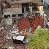 Deprem nedeniyle Cumhuriyet Meydanı etrafında bulunan 2 bina tamamen yıkılırken bir araç molazların altında kaldı.