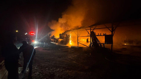 Balıkesir'in Dursunbey ilçesinde kereste fabrikasının deposunda