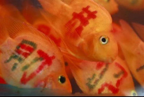 Dövmeli bir balık sattığında üç balık satmış kadar para kazandığını ifade eden Çinli esnaf dövmeleri lazerle yaptığını söyledi.