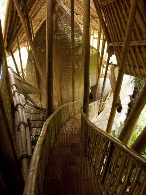 Galerinin tamamı için tıklayınızEşsiz bambu köyünün içinde yalnızca muz kağıdı duvarların içinde kullanılmış.