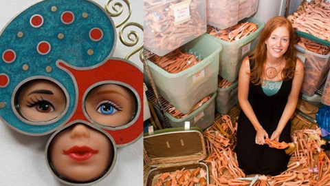 Amerikalı tasarımcı Margaux Lange gümüş ve renkli plastik parçalarla, Barbie bebeklerin elini, kolunu, bacağını, burnunu, yüzünü… yani vücudunun her parçasını birbirinden ayrırarak takı tasarlamış.