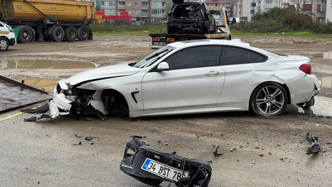 Öte yandan, kaza anı çevredeki iş yerlerinin güvenlik kamerası tarafından kaydedildi.