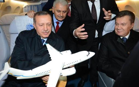 Başbakan Recep Tayyip Erdoğan ile Ukrayna Devlet Başkanı Viktor Yanukoviç, ortaklaşa uçak üretimi projesi kapsamında Antonov-158 tipi uçakta incelemelerde bulundu. Başbakan Recep Tayyip Erdoğan ile Ukrayna Devlet Başkanı Victor Yanukoviç, dünkü ikili ve heyetlerarası görüşmelerin ardından ortak basın toplantısı düzenledi. Yanukoviç, “Bugün sayın dostumla beraber havalimanında Antonov 158 uçağına bakmış olacağız. Antonov'un ürettiği bütün uçak modellerine bakma fırsatı bulabiliriz. Ortaklaşa yapabileceğimiz uçak yapımı zannediyorum ikili ilişkilerimizde geleceği büyük olan bir konudur” dedi. Resmi Konut'ta düzenlenen yemeğin ardından Esenboğa Havalimanı'na giden Başbakan Erdoğan ile Yanukoviç, apronda bulunan Antonov-158 tipi uçağı inceledi. İncelemenin ardından Erdoğan, Yanukoviç'i saat 23.15'te ülkesine uğurladı. Uğurlamada Ulaştırma, Denizcilik ve Haberleşme Bakanı Binali Yıldırım, Ankara Valisi Alaaddin Yüksel ile diğer ilgililer de bulundu. UÇAĞIN ÖZELLİKLERİ Ukrayna yapımı Antonov-158 tipi uçak, 99 yolcu ve 3 bin 100 kilometre menzile sahip. Saatte 850 kilometre hıza çıkabilen uçak, bin 900 metre uzunluğundaki pistlere inip kalkabiliyor.