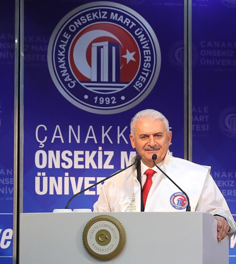 Başbakan Binali Yıldırım, Troia Kültür Merkezi'nde Çanakkale 18 Mart Üniversitesi akademik yılı açılışı ve fahri doktora tevcih törenine katıldı.