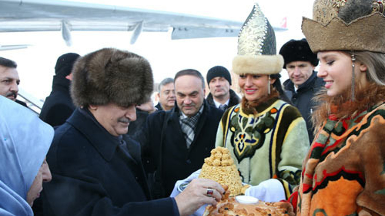 Başbakan Binali Yıldırım, özel uçak "TUR" ile Rusya'ya bağlı Tataristan Özerk Cumhuriyeti'nin başkenti Kazan'a geldi. BAŞBAKAN TATAR TATLISI İLE KARŞILANDI Moskova'daki temaslarının ardından kente gelen Başbakan Yıldırım'ı, Kazan Havalimanı'nda, Tataristan Cumhurbaşkanı Rüstem Minnihanov, karşıladı. Başbakan Yıldırım'a Tatar tatlısı ikram edildi. Başbakan Yıldırım ile eşi Semiha Yıldırım, Başbakan Yardımcısı Nurettin Canikli, Aile ve Sosyal Politikalar Bakanı Fatma Betül Sayan Kaya, Ekonomi Bakanı Nihat Zeybekci, Enerji ve Tabii Kaynaklar Bakanı Berat Albayrak, Gıda Tarım ve Hayvancılık Bakanı Faruk Çelik, Kültür ve Turizm Bakanı Nabi Avcı Ulaştırma, Denizcilik ve Haberleşme Bakanı Ahmet Arslan ve AK Parti Grup Başkanvekili Mustafa Elitaş da Kazan'a geldi.