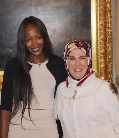 Galerinin tamamı için tıklayınızFirst Lady Emine Erdoğan Formula 1 için Türkiye'ye gelen dünyaca ünlü top model Naomi Campell'ı Başbakanlık'ta ağırladı. First Lady daha önce ''Filistin için elele'' kampanyasına çağırdığı ancak katılamayan ünlü modeli bu kez çaya davet etti.