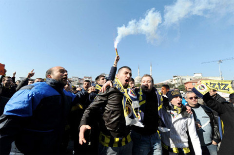 Çağlayan'daki adliye önünde öğlen saatlerine kadar, dünkü kalabalığa göre az sayıda taraftar geldi.