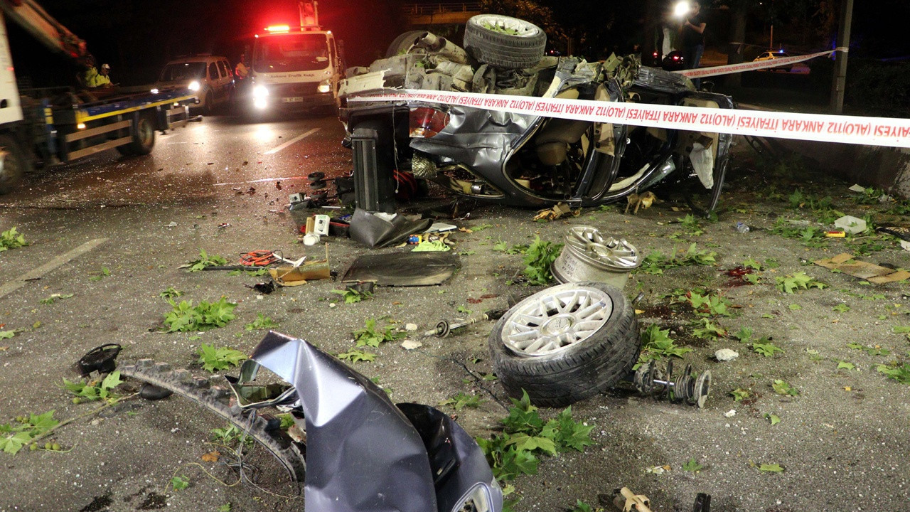 Keçiören Fatih Caddesi'nden Kazım Karabekir Caddesi istikametine seyreden, sürücüsü henüz belirlenemeyen 06 BIV 655 otomobil Etlik Caddesi kesişiminde köprünün bariyerlerine çarparak düştü. Yaklaşık 5 metre yükseklikten Etlik Caddesi'ne düşen otomobil ters dönerken köprüden kopan bariyerler de araca saplandı.Kaza sonrası olay yerine sevk edilen 112 Acil Servis ekipleri, araçta bulunan Hakan Ü. ve Mehmet Ö. ile kimliği belirlenemeyen bir yaralıyı hurdaya dönen otomobilden güçlükle çıkardı. Yaralılar olay yerinde yapılan ilk müdahalenin ardından ambulanslarla Dışkapı Yıldırım Beyazıt Eğitim ve Araştırma Hastanesi ile Ankara Üniversitesi İbni Sina Hastanesine kaldırdı.Dışkapı Yıldırım Beyazıt Eğitim ve Araştırma Hastanesine kaldırılan yaralılardan Hakan Ü. yapılan müdahaleye rağmen kurtarılamadı. Aynı hastanede tedavi altına alınan, kimliği belirlenemeyen yaralının da sağlık durumunun ciddiyetini koruduğu belirtildi.Hurda yığınına dönen otomobilin parçaları ise refüjdeki ağaçta asılı kaldı. Taksi şoförü kıl payı kurtuldu: Olay anında otomobilin düştüğü yolda seyreden 06 T 0050 plakalı taksinin sürücüsü Hamdi Öztürk, kazadan kıl payı kurtuldu. Etlik Caddesi'nden Ulus istikametine seyir halinde olan Öztürk, köprü altına girerken büyük bir gürültü duyduğunu ve bir otomobilin yan şeride düştüğünü söyledi.Kopan demir parçaları taksiye isabet etti: Bu sırada çevreye çok sayıda otomobil parçası ve demir korkulukların savrulduğunu belirten Öztürk, bunlardan bir kısmının taksiye isabet ederek hasara neden olduğunu anlattı. Araç camının da isabet eden bir parçayla kırıldığını ifade eden Öztürk, ölümden kıl payı kurtulduğunu kaydetti. Kaza nedeniyle Etlik Caddesi'nin Ulus istikameti, yaklaşık 2 saat süreyle ulaşıma kapanırken, hurdaya dönen otomobil çekici ile olay yerinden kaldırıldı.