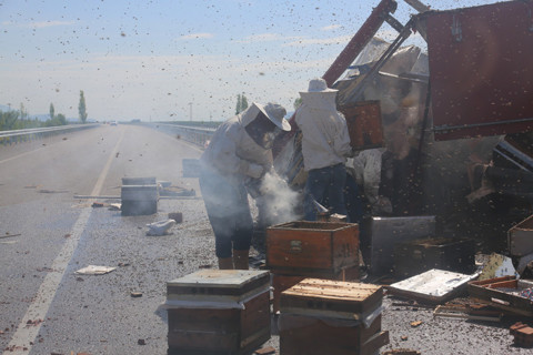 Kovanlardan çevreye dağılan arılar nedeniyle polis, jandarma, itfaiye ve sağlık ekipleri kaza yerine yaklaşmakta zorlandı.