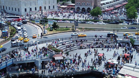 oluşturdu. Eminönü'ndeki insan seli havadan çekilen görüntülere