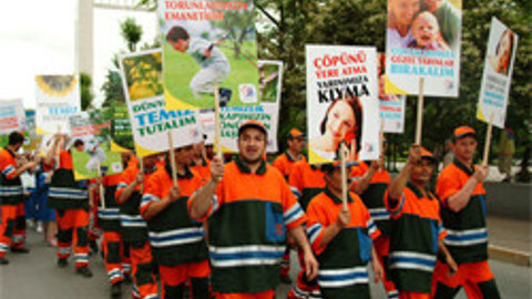 Öğrencilerin, belediye temizlik görevlilerinin ve halkın yürüyüşü