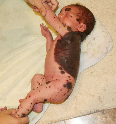Galerinin tamamı için tıklayınızDylan beş yıl önce dünyaya geldiğinde doktorlar hemen ondaki farklılığı tespit etti. Belinde siyahlık vardı ve vücudundaki büyük benler vardı. Dylan’da doğuştan melanositik nevüs vardı. Vücudunun %80’i doğum lekeleriyle kaplıydı. Doktorlar, Dylan’ın annesine bebeğinin birçok operasyona girmesi gerektiğini anlattı.