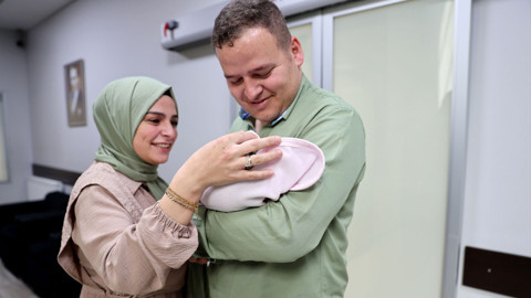 70 günlük yoğun bakım sürecinin ardından sağlığına kavuşan bebeklerini kucaklarına alan çift, evlatlarını bağrına basmanın mutluluğunu yaşıyor.