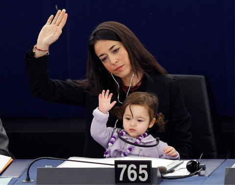 2 yaşına basan Victoria, konuşması sıraısnda ve oylamada annesinden desteğini esirgemedi.
