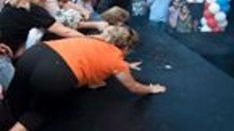 İzmir merkezli kuyumcu dükkanının Balçova şubesinin açılışında düzenlenen defileye katılanlar, atılan altınları kapmak için izdiham yarattı.