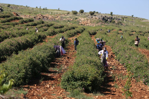 Galerinin tamamı için tıklayınızFabrikanın yakınında yaklaşık 600 dönüm alanda ekilen "Isparta gülü" olarak bilinen "Rosa damascena" türü güller kadınlar tarafından toplanıyor.