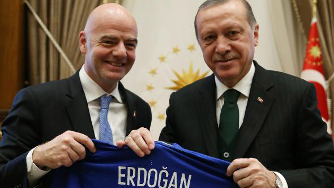 Beştepe'de sürpriz konuk! Erdoğan'a forma hediye etti Galerinin tamamı için tıklayınız Cumhurbaşkanı Recep Tayyip Erdoğan, Beştepe'de FIFA Başkanı Gianni Infantino'yu kabul etti.