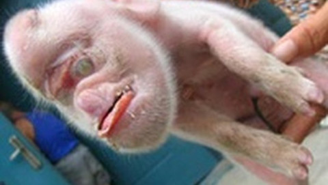 Galerinin tamamı için tıklayınızAncak bu ilk değil... 2009 yılında Feng Changlin adındaki Çinli çiftçi, çiftliğinde domuz yavrusu dünyaya geldikten birkaç gün sonra yavrunun normalin çok dışında bir yüze sahip olduğunu fark etmişti. Bir anda Çin’in gündemine oturan domuz yavrusunun kulakları, gözleri ve burnu maymunlarınkine benzerlik gösterdiği için adı “maymun suratlı domuz mutant” olarak belirlenmişti.