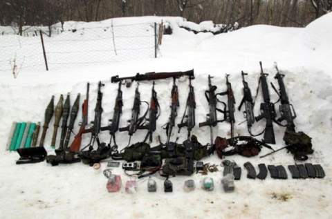 Açıklamada, teröristlerle birlikte 2 M-16 piyade tüfeği, 9