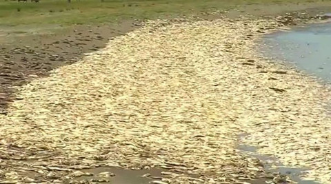 Binlerce mürekkep balığı sahile vurdu Galerinin tamamı için tıklayınız Ölü mürekkep balıkları kumsal boyunca bir şerit oluşturdu.