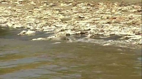 Galerinin tamamı için tıklayınızKumsal boyunca uzanan ölü balıkların sağlık tehdidi yarattığı açıklandı.