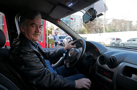 Galerinin tamamı için tıklayınız"Tiyatro sahnesinde ve taksi durağında kendimi çok mutlu hissediyorum. Taksi şoförlüğünün çok farklı bir meslek olduğunu da yapmaya başlayınca öğrendim. Takside her şeyi çok iyi gözlemliyorum, benim için tiyatroya da bir malzeme oluyor çünkü memleket haberi almak için ya berberle ya da taksi şoförüyle konuşursunuz çünkü onlar sürekli hareket halindedir."