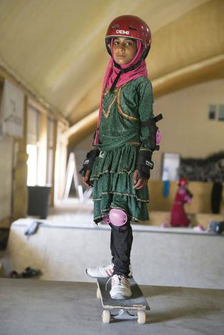 Galerinin tamamı için tıklayınızBu amaçla kurulan "Skateistan" alanında özellikle kız çocuklarına kaykay kullanması öğretiliyor.