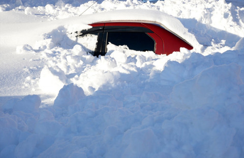 Bitlis'de 2 metre kar yağdı ev ve araçlar kara gömüldü