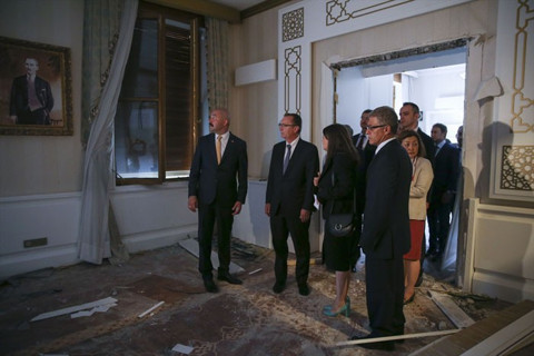 Birleşmiş Milletler (BM) Siyasi İşlerden Sorumlu Başkan Yardımcısı Jeffrey Feltman, TBMM'yi ziyaret etti. Feltman ve beraberindeki heyet, TBMM'nin 15 Temmuz FETÖ'nün darbe girişiminde hasar gören kısımlarını gezdi. Meclis'in Şeref Holü, Başbakanlık makamı ve ek hizmet binasında zarar gören yerleri gezen Feltman, TBMM personelinden 15 Temmuz gecesi yaşananlar hakkında da bilgi aldı. BM heyeti TBMM'deki manzara karşısında şaşkınlıklarını gizleyemedi.