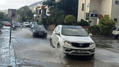 Bodrum'a 15 dakika sağanak yetti de arttı! Her yeri su bastı...