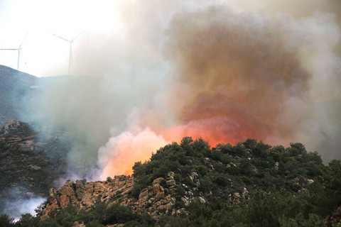 Galerinin tamamı için tıklayınızRüzgarın etkisiyle alevler büyümeye devam ederken, polis ekiplerince yangın bölgesinin girişi araç trafiğine kapatıldı.