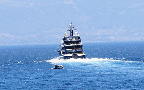 Galerinin tamamı için tıklayınız85 metre uzunluğundaki yatta kapalı ve açık yüzme havuzları, SPA, sinema salonu, iki mini denizaltı ve su sporları ünitesi bulunuyor. 220 bin litre yakıtla hiç durmadan 6 bin mil yol kat edebilen mega yatta özel koruma timi de yer alıyor.