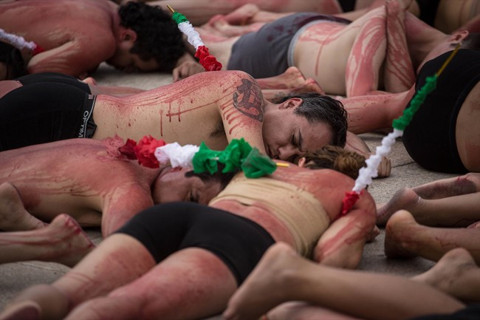 Meksika'nın başkenti Meksiko'da boğa güreşleri protesto edildi. Devrim Anıtı önünde toplanan bir grup, vücutlarına kırmızı boya sürüp uzunca bir süre yerde yatarak eylem yaptılar.