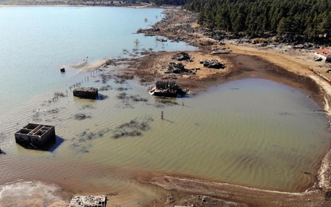 Seben'a bağlı Taşlıyayla mevkisinde yapımına 2004'te başlanan, çevre uzunluğu 22 kilometre olan, 50 milyon metreküp su kapasitesine sahip Seben Taşlıyayla Göleti'nin suyu boşaltıldı.30 kilometre uzaklıktaki Seben ilçesine su götürmek için sulama kanalı yapılması projesi kapsamında, kapalı boru sistemiyle göldeki su, ilçeye aktarılacak.Boru hattının yapım çalışmaları için gölde bulunan 50 milyon metreküp suyun yaklaşık yüzde 80'i boşaltıldı. 'Batı Karadeniz'in en büyük yapay gölü' unvanına sahip Taşlıyayla Göleti'nin boşaltılmasıyla eski yapılar da gün yüzüne çıktı.Suların çekilmesiyle birlikte daha önce Orman İşletme Müdürlüğü olarak kullanılan, bölgedeki hizmet binaları ortaya çıktı. Suların çekildiği ve binaların ortaya çıktığı bölge, dronla havadan görüntülendi.