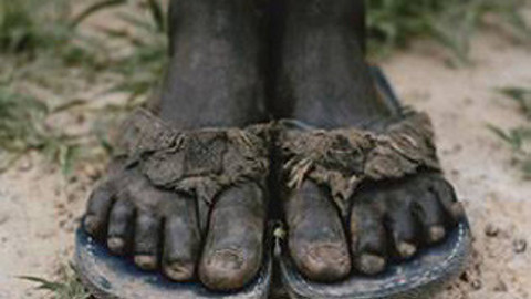 Afrikalı gençlerin futbol oynarken giydiği ayakkabıları görünce,