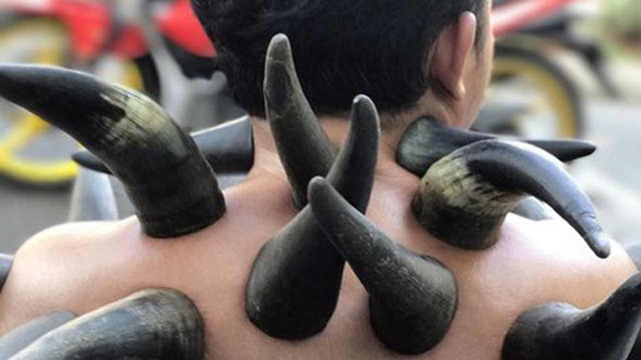 Böylesi güç görülür önce alıp tek tek yakıyorlar ardından... Galerinin tamamı için tıklayınız ENDONEZYA'nın yerel bir tedavi türü olan boynuzlu tedavi görenleri hayrete düşürdü. Endonezyalılar geleneksel tedavi yöntemlerinden kupa çekmeyi güç sembolü olduğuna inanılan bufalo boynuzlarıyla yaptırıyor