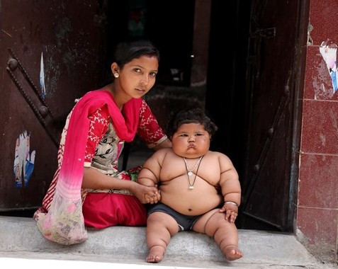 Hindistan'ın Pencap eyaletinde normal bir kiloda dünyaya gelen Chahat Kumar adlı bebek 8 ay içinde 17 kiloya ulaşarak 4 yaşındaki bir çocukla aynı ağırlığa geldi.