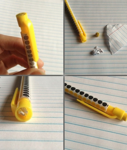 dibine yuvarlanmış küçük kağıt parçaları yerleştirerek silginin