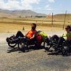 Fransa’nın Paris şehrinde yaşayan Anna ve Nicolas çifti, macera yaşamak üzere 5 ay önce 3 tekerlekli yatay bisikletleriyle dünya turuna çıktı. Sırasıyla, İtalya, Almanya, Makedonya ve Yunanistan gibi ülkeleri geçerek Türkiye’ye giriş yapan Fransız çift, dün öğle saatlerinde Van’ın Özalp ilçesine giriş yaptı Anna ve Nicolas çift, buraya yaptıkları alışveriş sonrası yollarına devam etti. Dünya turlarını 1 yılda bitirecek olan çift, sırasıyla İran, Türkmenistan, Özbekistan, Tacikistan, Çin, Vietnam, Kamboçya ve Tayland üzerinde Hong Kong’a giderek... Dünya turlarını bitirecek. Yaklaşık 5 ay önce yola çıktıklarını ifade eden Anna ve Nicolas çifti, “Şu ana kadar yolculuğumuz çok iyi geçti. Yaklaşık 4 bin kilometre yol kat ettik. Gördüğümüz kadarıyla Türkiye çok güzel... Bugün de İran ve diğer ülkeleri takip edip Hong Kong’a ulaştığımızda dünya turumuzu tamamlayacağız” dediler.