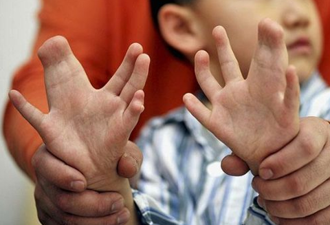 Çin'deki Shenyang kasabasında yaşayan 6 yaşındaki çocuğun ellerinde 15, ayaklarında da 16 parmak var.