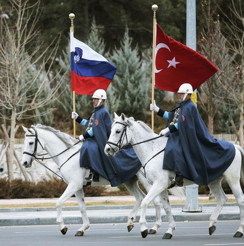 Pahor, Türkiye ziyareti sırasında çekilmiş atlı süvarilerin ellerinde Slovenya ve Türkiye bayraklarının olduğu kareyi de paylaşmayı ihmal etmedi.