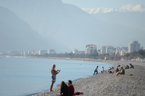 Türkiye'nin birçok bölgesinde kış koşulları etkisini sürdürürken Antalya'da sıcak havayı fırsat bilen vatandaşlar denizin keyfini çıkarıyor.
