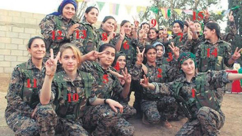 Galerinin tamamı için tıklayınızİŞTE O FOTOĞRAFTAKİ KADIN TERÖRİSTLERİN KİMLİKLERİ: Arîn Emina (1 ) - Zilan Tekoşin (2) - Baran Kübra (3) - Jiyan Amed (4) - Özğür Laşer (5) - Delila Dersim (6) - Çiya Kobani (7) - Cudi Diyar (8) - Berfin Slava (9) - Jiyan Peyman (10) - Viyan Amara (11) - Arya Averaş (12) - Gülistan Kobane (13) - Laşer Dicle (14) - Hevidar Peyman (15)