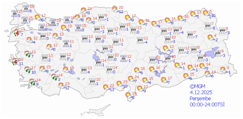 Galerinin tamamı için tıklayınızHava sıcaklığında önemli bir değişiklik olmayacağı, Ülkemiz genelinde mevsim normalleri civarında seyredeceği tahmin ediliyor.