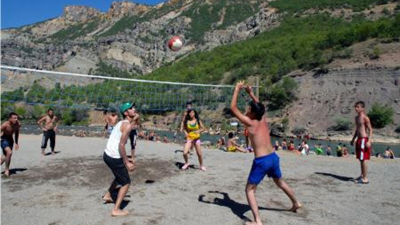 Hava sıcaklığının 41 dereceye ulaştığı Tunceli’de, vatandaşlar ile turistler Pülümür ve Munzur Çayı’nda serinlemeye çalışıyor. Kentte hava sıcaklığının yükselmesi nedeniyle Tunceli sakinleriyle, şehre gelen yerli ve yabancı turistler, Pülümür ve Munzur Çayı’na akın etti. Son yıllarda Türkiye’nin ünlü plajlarını aratmayan görüntülere sahne olan Pülümür ve Munzur çaylarına gelenler, şezlongların üzerinde güneşlenmenin keyfini yaşıyor.Sıcaktan bunalanlar, yüzmenin yanı sıra plaj voleybolu, futbol gibi etkinliklere katılarak, güneşin ve kumun tadını çıkarıyorlar. Almanya’dan gelen ve yaz tatilini geçiren Suzan Akın da, her yaz tatil yapmak için çocuklarıyla Tunceli’ye geldiğini ifade etti Serinlemek ve güneşlenmek için özellikle Munzur Çayı’nı tercih ettiğini söyleyen Akın, "Çünkü harika bir doğası var, hava çok güzel, ortam çok hoş. Herkese tavsiye ediyorum. Almanya’daki herkese selamlar. Herkesi buraya bekliyoruz" diye konuştu. Tunceli’de yapılması planlanan barajlara dikkati çekmek amacıyla İstanbul’dan gelen Özay Şahin ise bölgede yapılması planlanan barajlara karşı olduklarını ifade ederek, Munzur ve Pülümür vadisinin güzel bir doğaya sahip olduğunu söyledi.