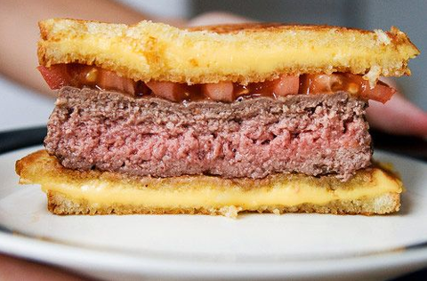 Bu hamburger iki kaşarlı tost arasına konulmuş kalın bir dilim et ve domatesten oluşuyor.