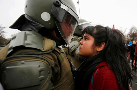 Galerinin tamamı için tıklayınız2016 yılında birçok olay yaşandı birçok tepki yıla damgasını vurdu. Bu kadınlar ise olayları en güzel şekilde ifade ederek tarihe geçtiler. Şili'de 1973 yılında yapılan askeri darbenin hatırlanması için yapılan protestoda bu genç kız çevik kuvvetin gözlerinin içine korkusuzca bakıyor.