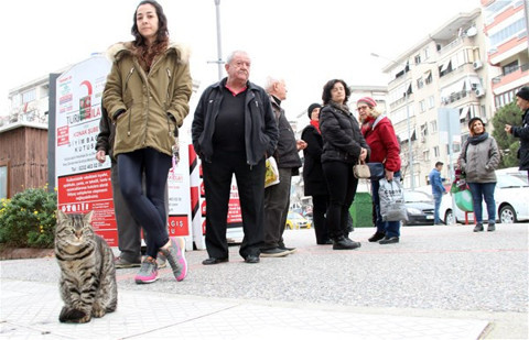 İzmir’de her gün süt içebilmek için tam 4 senedir mahalleliden önce süt kuyruğunda sıraya giren sevimli sokak kedisi görenleri hayrete düşürüyor.